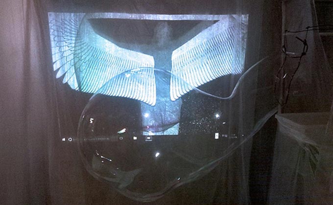 Este proyecto propone realizar proyecciones interactivas de imágenes aladas sobre una nube de polvo. [ES] Cuando un visitante entra en el área cubierta por un sensor kinect, las alas siguen el movimiento de sus brazos en tiempo real. Su propia imagen alada se ve proyectada en la nube de polvo. El sonido es una composición generativa. This proposal aims to project interactive images onto a dust cloud. [ENG] When a visitor enters the area covered by a kinect sensor, the wings follow the movement of his arms in real time. His own winged image is projected in the dust cloud. The sound is a generative composition. |