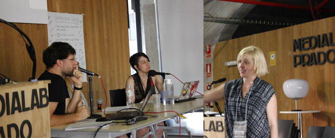 [ES] RadioLAB laboratorio de radio de Medialab Prado Taller experimental y abierto para crear y desarrollar propuestas innovadoras de producción radiofónica a través 6 proyectos colaborativos seleccionados para ser desarrollados. Las proyectos son para programas en vivo: radiorevistas, transmisiones desde exteriores, informativos o para cualquier tipo de producción radiofónica: radionovelas, otras ficciones y dramatizados, spots y ante todo propuestas sobre nuevos formatos radiofonicos. En resumen, experimentar y prototipar otras formas de comunicar radiofónicamente. La ultima jornada esta dedicada a la presentación de los proyectos al resto de la comunidad. |