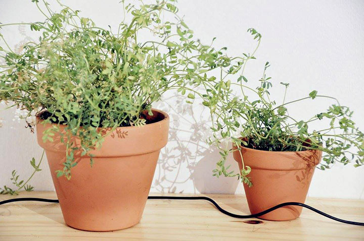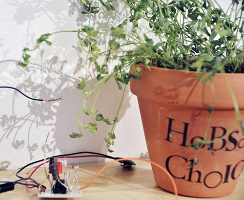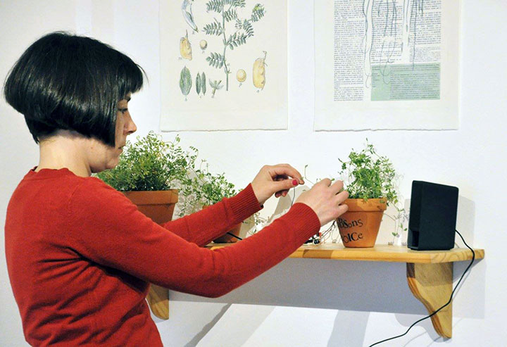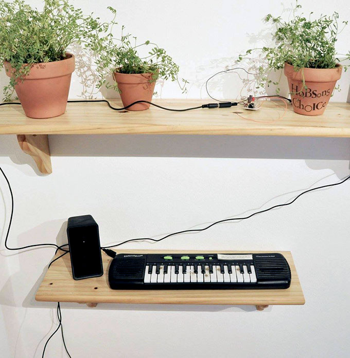 Plantas sonoras interactivas; plantas con placa crackle box y altavoces, 2017 | ||||||||||||||