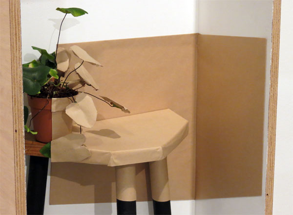 [ES] Aislando partes de la sala y su inmueble, delimitando exactamente por los márgenes del objetivo en un encuadre previamente elegido, donde todo lo que se ve a través del mismo queda cubierto por un material y textura similar. Confundiéndose en un mismo plano de profundidad. Lo que deja ver es la creación de una ilusión por detrás de los escenarios. Al alejar la cámara del encuadre se reveles el truco y rompe la ilusión y con ese distanciamientos, se aprecia el espacio en off de la escena. Es la propia de-construcción de la imagen fotográfica y la representación pictórica. |