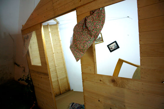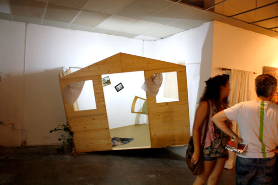 [ENG] Home sweet home is conformed by a prefabricated house and installed in the exhibition space. A thrown object, embedded against the wall.