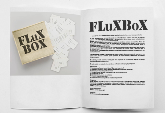El taller fanzine sonora se desarrolla partir de un FLuXBoX que contiene una serie de partituras abiertas a la interpretación. Gira en torno a la construcción de una trama sonora partiendo de un espacio vivido de individuos con sonoridades propias.