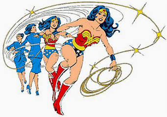 Los patines de la Mujer Maravilla, un ícono de la feminidad y el girl power La Mujer Maravilla se considera un personaje puramente feminista, a pesar de su diseño claramente sexualizado y dirigido a hombres. Parece importante el dato de que es una de las pocas heroínas que no tiene un contraparte masculino (sino que constituye por si misma). Es la antítesis de ‘víctima’ y el arquetipo de la Femenina Liberada, no confinada por ningún rol social. En Technology/Transformation: Wonder Woman 1978-79 Dara Birnhaum recontextualiza iconos de cultura pop y los géneros de televisión para revelar sus subtexto ideológico. Aislando y repitiendo el momento de transformación cuando Diana Prince se convierte en Wonder Woman, desenmascara lenguaje televisivo y la representación de géneros. Al igual que otros video artistas y aquí otro paralelo con el proyecto entre manos, trata las diferencias y similitudes entre la experiencia visual en un entorno privado y cuando la proyeccion está situado en un espacio público, tales como una sala de exposiciones. |