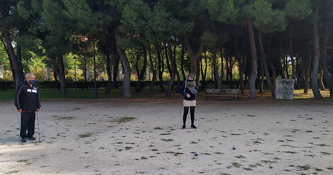 Notas de artista sobre obra Site Específic en Móstoles Móstoles es una población que se instala en la confluencia del río Guadarrama con el Arroyo del Soto. Un cruce de caminos en la etapa de caminantes y un lugar de viñedos, muy apreciados por la corte. Tras la Guerra Civil, Móstoles absorbió una parte importante de la explosión demográfica de Madrid y el crecimiento y el desarrollo se vuelven imparables. Este hito histórico ha sido el punto de inflexión definitivo para dimensionar la ciudad como territorio de referencia. En las afueras de Móstoles, limitando con el Parque Regional del curso medio del río Guadarrama y su entorno, está el Parque Natural El Soto. Un paraje natural con un gran lago con patos y ocas por el que discurre el arroyo de El Soto. Cuenta con una gran diversidad de vegetación. No solo tienen especies de jardinería en su ruta botánica, sino también especies autóctonas de gran valor natural, paisajístico e histórico. Los almendros que se encuentran en El Soto posiblemente sean los árboles más antiguos de Móstoles. Muestran de manera indirecta que Móstoles fue un pueblo dedicado a la agricultura. Y no podemos olvidar otra especie emblemática, el olmo. Estos árboles permiten viajar al pasado e imaginar cómo sería la vida de las personas que sembraron, cuidaron y disfrutaron de este entorno, que ha servido también como lugar de refugio o alimento para aves, peces y una multitud de singulares especies de animales que habitan este lugar privilegiado, entre las tierras de cultivo. En la antigua dehesa del Soto, cada mes de junio y octubre se sacaban los pastos a subasta. En noviembre fue el lugar para la matanza y durante todo el año era un lugar de lavado de ropa. Las lavanderas forman parte del imaginario colectivo de todas las localidades madrileñas. Las mujeres al lado del río, de rodillas, fregando la ropa, tejen una estampa que se repite a lo largo de la historia y de los años. Menos de un siglo después, es un lugar donde pasear, ver los almendros en flor, sentir el frescor del agua del lago, juguetear con un pato, o simplemente disfrutar del entorno. Recorriendo Móstoles hacía el centro, en la zona oeste, hay otro parque singular, el Parque Finca Liana, muy cuidado y tranquilo, aislado del ruido por una valla de hormigón. Es una antigua finca privada que al igual que el parque natural del soto ahora es publica. El interior boscoso, las zonas ajardinadas con sus plazas, bancos y grandes árboles que ofrecen sombra y refrescan el aire, lo convierte en un lugar con mucho encanto. Tiene fuentes monumentales y pintorescas y un enorme estanque artificial. El parque es autosuficiente en el suministro de agua gracias a un sistema de pozos y canalizaciones. Dispone de un lugar de juegos infantiles de gran formato y donde además se celebran las fiestas locales. También es un buen lugar para pasear, hacer deporte al aire libre o jugar a la petanca. El juego, sobre todo su versión social, revela los rasgos de identidad cultural de una sociedad. Un tipo de juegos que tienen una particular relación con los conceptos sociales y culturales son los juegos populares, transmitidos de generación en generación a través de la tradición oral y práctica. Se trata de un acto lúdico en el que se experimenta en el propio cuerpo ciertas formas que están íntimamente ligadas a conceptos como cultura, sociedad, valores, normas y conductas. Constituye el reflejo social y la imagen viva de las mentalidades de una comunidad, las relaciones con sus semejantes y con el entorno. De esta forma, las actividades de ocio tradicional sirven para explicar las formas de vida de las personas. Se rigen por un sistema flexible de reglas y admiten variantes en función de los intereses de los participantes. Pueden ser modelada de múltiples formas y en este proceso influyen una gran diversidad de aspectos. Todos estos son parámetros particularmente ligados a la tradición de una cultura; las personas y las costumbres desarrolladas por estas a lo largo de los años. El juego de la petanca en Móstoles es un juego popularizado tanto entre las vecinas como los vecinos. Es un juego tradicional en el que el objetivo es lanzar bolas metálicas tan cerca como sea posible de una pequeña bola de madera, lanzada anteriormente por un jugador, con ambos pies en el suelo y en posición estática desde una determinada zona. El deporte en su forma actual surgió en 1907 en la provenza francesa y su nombre procede de la expresión "pè(s) tancats" ("pies juntos"). Tiene la ventaja de poder practicarse en casi todas partes y por cualquier persona. En realidad solo hace falta un campo liso y limpio y las bolas de hierro. La petanca no conoce ni sexo, ni edad, ni procedencia, ni condición social. Hombres o mujeres, ancianos o niños, fuertes o débiles, todo el mundo puede tirar bolas y nadie está excluido. Pero los apasionados de la petanca saben que exige aptitudes mentales y físicas que salen de los límites del banal pasatiempo. Cuestiones como son el ámbito social (lógica externa) que rodea al juego, además de un análisis social de las costumbres de la población que la práctica, la ambigüedad que hay en la utilización del reglamento y de los acuerdos lúdicos fuera de él, además de las técnicas utilizadas por cada población y cada jugador. |