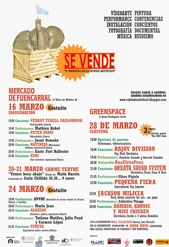Pablo Ángel Lugo Martínez, Isaac Senchermés, Mireia Pérez, Marieta Campos, Natalia Lozano Sánchez, Elisa García, Azucena González, Anna Katarina Martín, Lorenzo Sandoval, Gonzalo Pérez, Colectivo XLF, Mar Cejas, Fátima Montero, Ángels Le Fou, Colectivo The Way, Carmen Trueba Serrano, Cristina Salas, Isabel G.M., Andreas Román y Luis Cañizares, Ángela González, Laura Vallés , Pablo Lemos, Colectivo La Perrera, Tuku/On_ly, Juan Pablo Meneses, Rodrigo Imaz, Ricardo Rodríguez (Rokko), Luismi Romero, Juanita Carrasco, Jairo A. Llano, Luis Alhama.